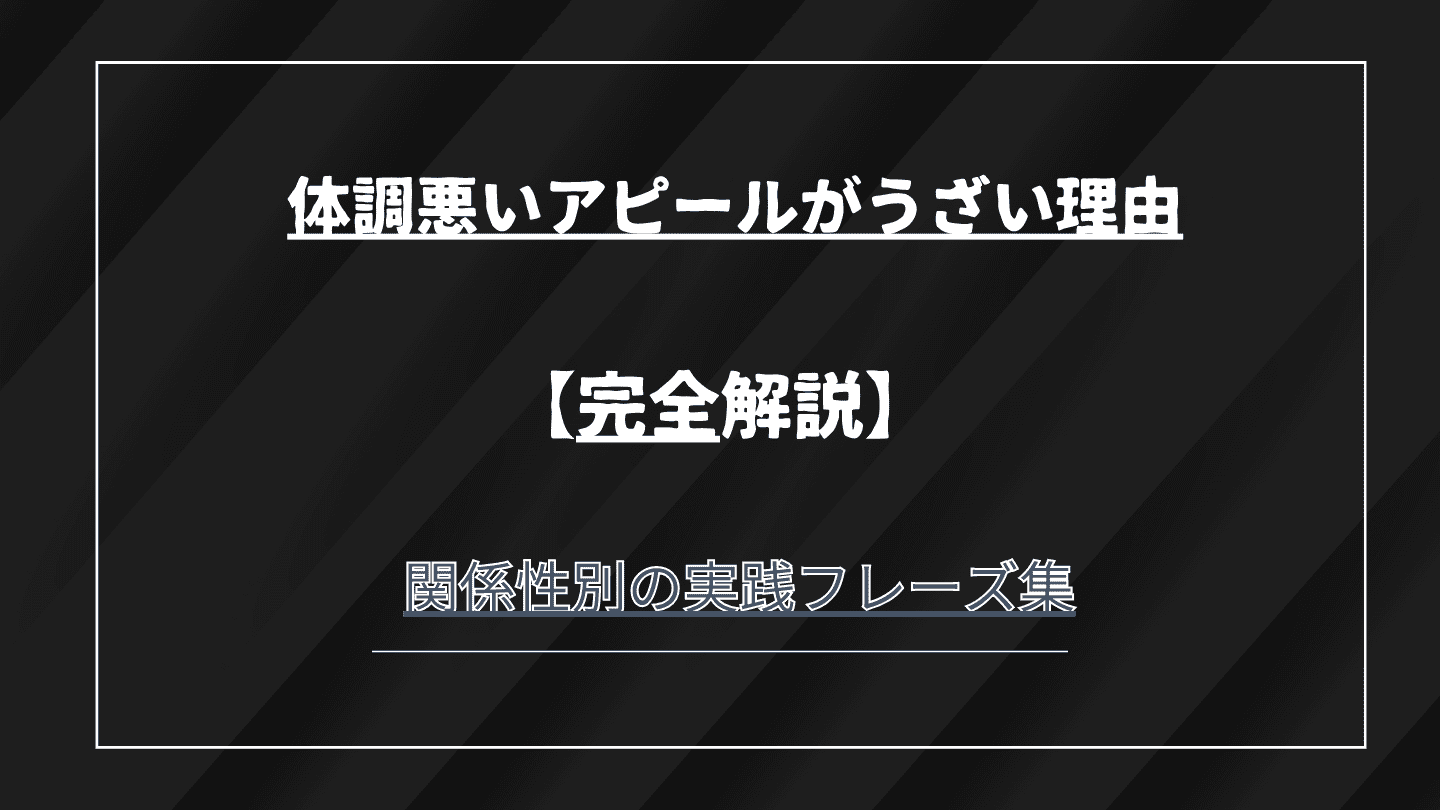 体調悪いアピールがうざい理由と賢い対処法|関係性別の実践フレーズ集
