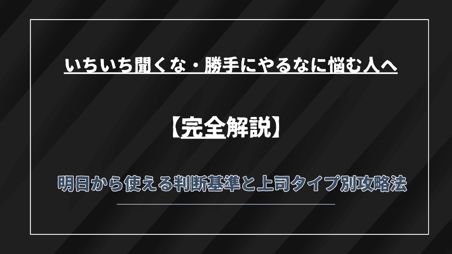 「いちいち聞くな」「勝手にやるな」に悩む人へ|明日から使える判断基準と上司タイプ別攻略法