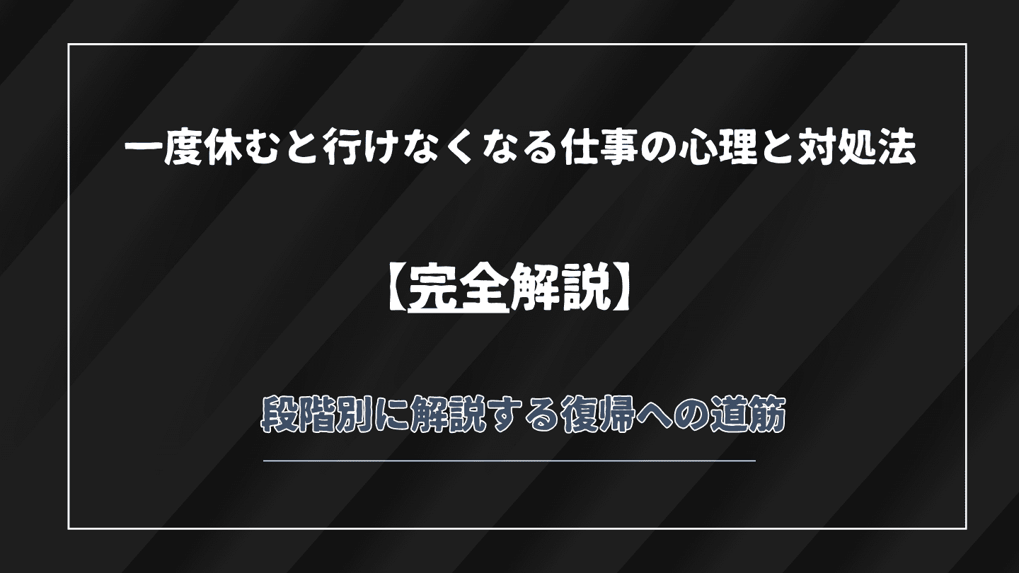 一度休むと行けなくなる仕事の心理と対処法|段階別に解説する復帰への道筋