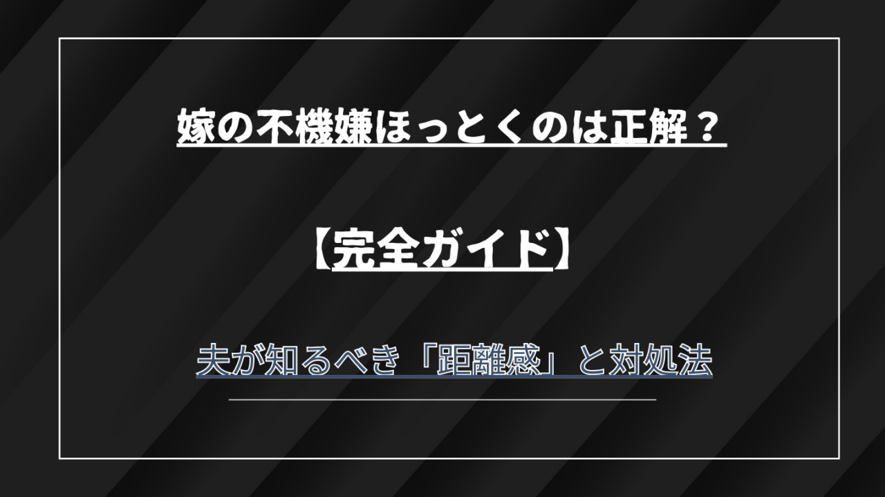 嫁の不機嫌ほっとくのは正解?夫が知るべき「距離感」と対処法の完全ガイド