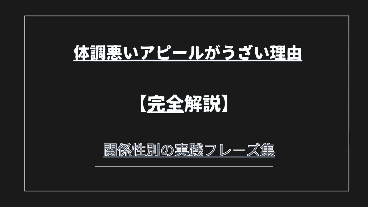 体調悪いアピールがうざい理由と賢い対処法|関係性別の実践フレーズ集