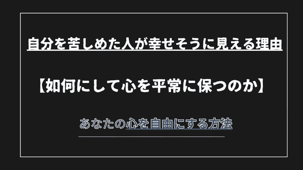自分を苦しめた人が幸せそうに見える理由|トラウマにならずにあなたの心を自由にする方法