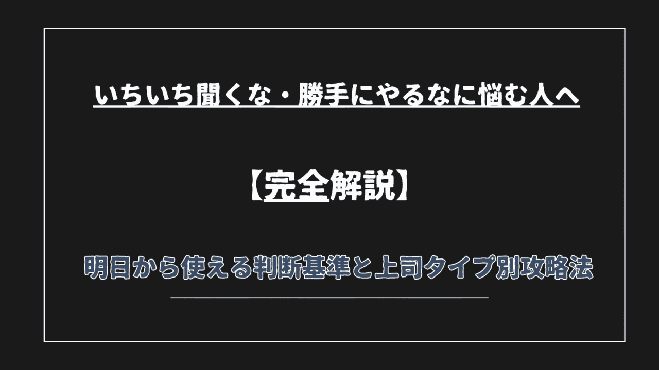 「いちいち聞くな」「勝手にやるな」に悩む人必見【上司のタイプ別対応と判断基準】