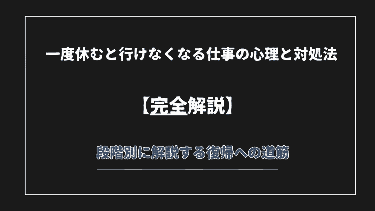 一度休むと行けなくなる仕事の心理と対処法|段階別に解説する復帰への道筋