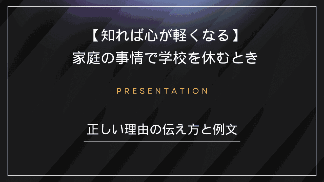 気まずさや不安、感じていませんか? 「家庭の事情で学校を休みます」と伝えるとき、ちょっとした気まずさや後ろめたさを感じる人も多いのではないでしょうか。「本当に... -